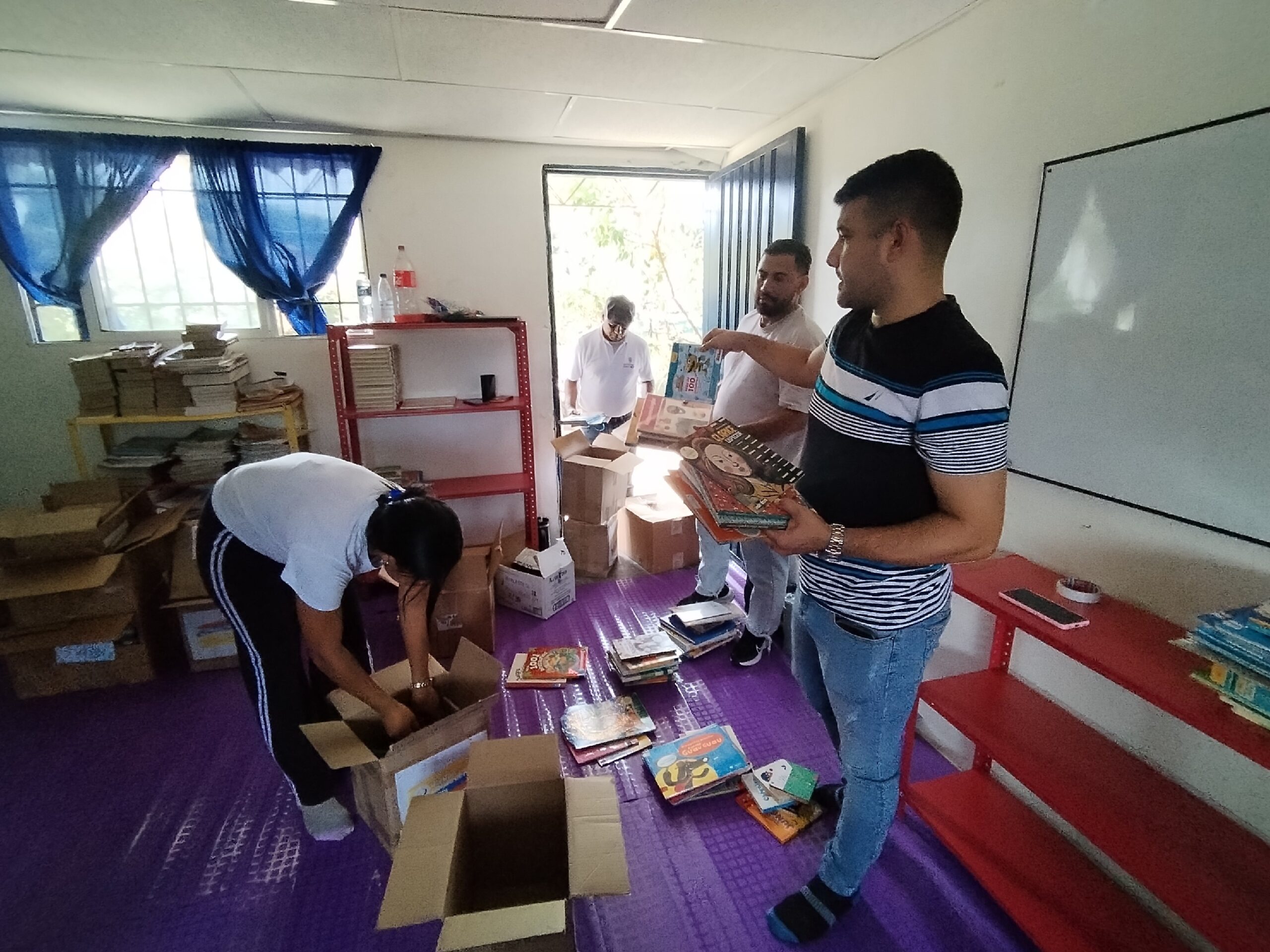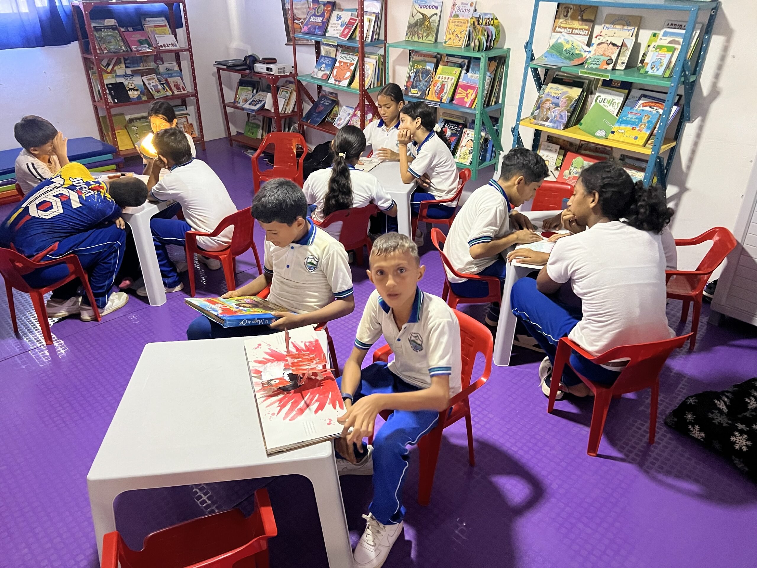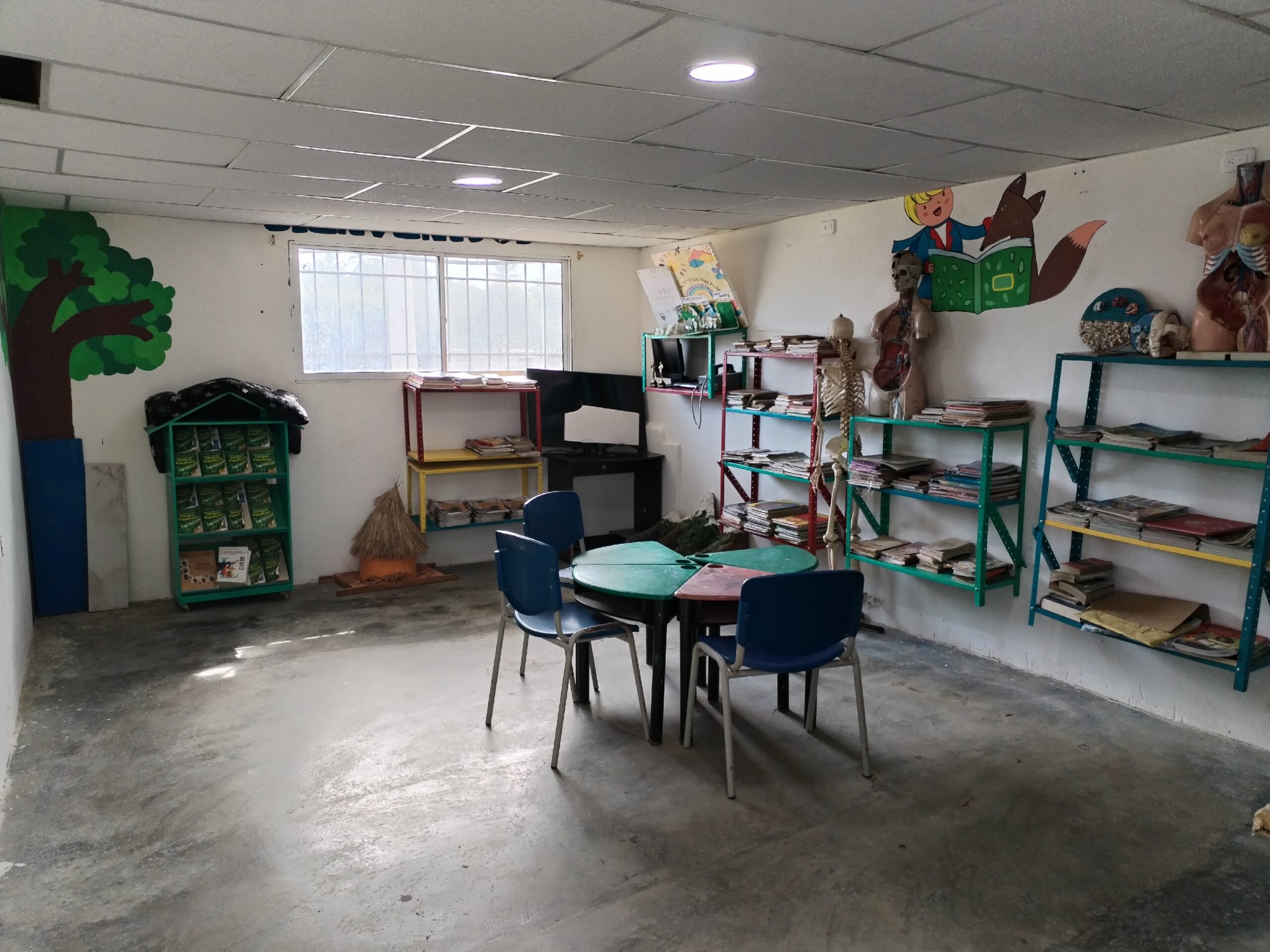 La colección cuenta con 750 libros, así como todos los elementos necesarios para ser un lugar agradable y una herramienta de lectura beneficiosa para la comunidad escolar. Para ello contamos con el apoyo de los estudiantes del Colegio Juan Ramón Jiménez de Bogotá. Trabajamos en colaboración con esta institución a lo largo del año 2025 y asesoramos a los estudiantes que organizaron una donación de libros en el mes de mayo dirigida a su comunidad de padres. Gran parte de los libros que constituyen el fondo de esta biblioteca provienen de esta donación. En Colombia, los estudiantes del último año de secundaria deben realizar un cierto número de horas de Trabajo Social para poder graduarse del Bachillerato. Fue en este marco que se realizó la donación.
