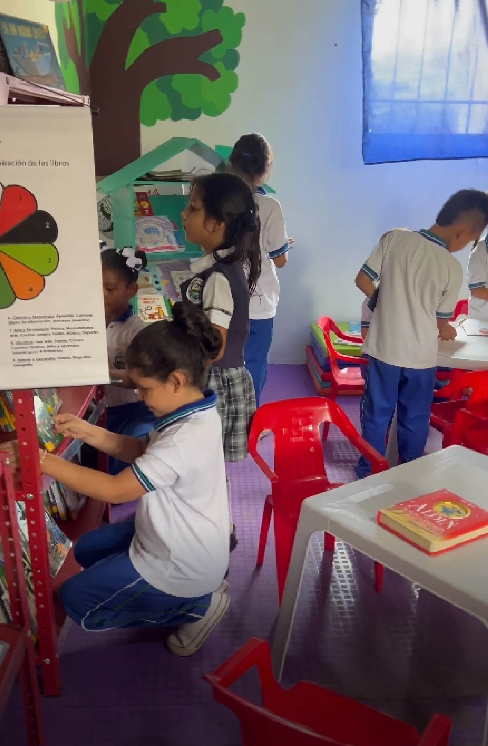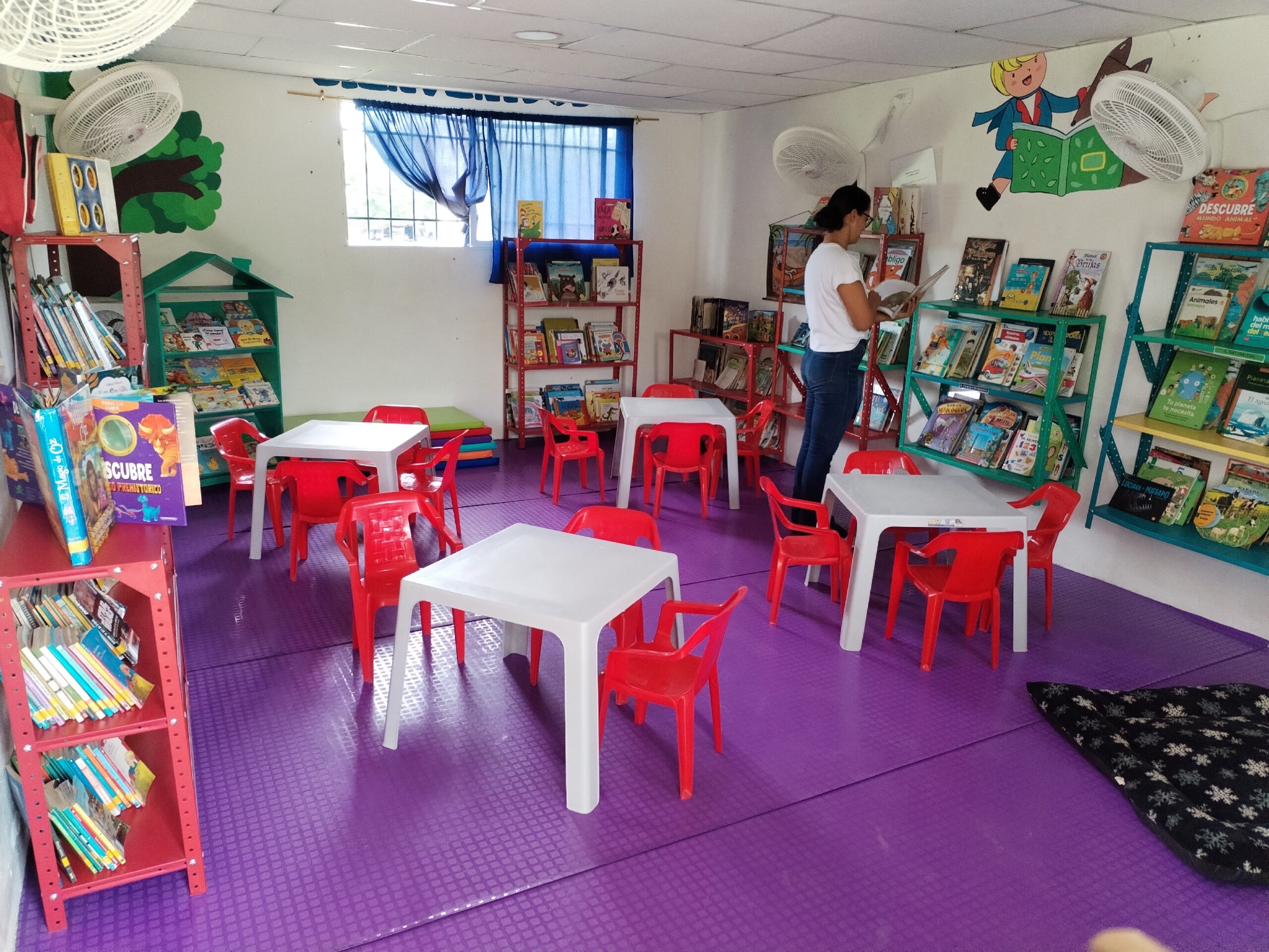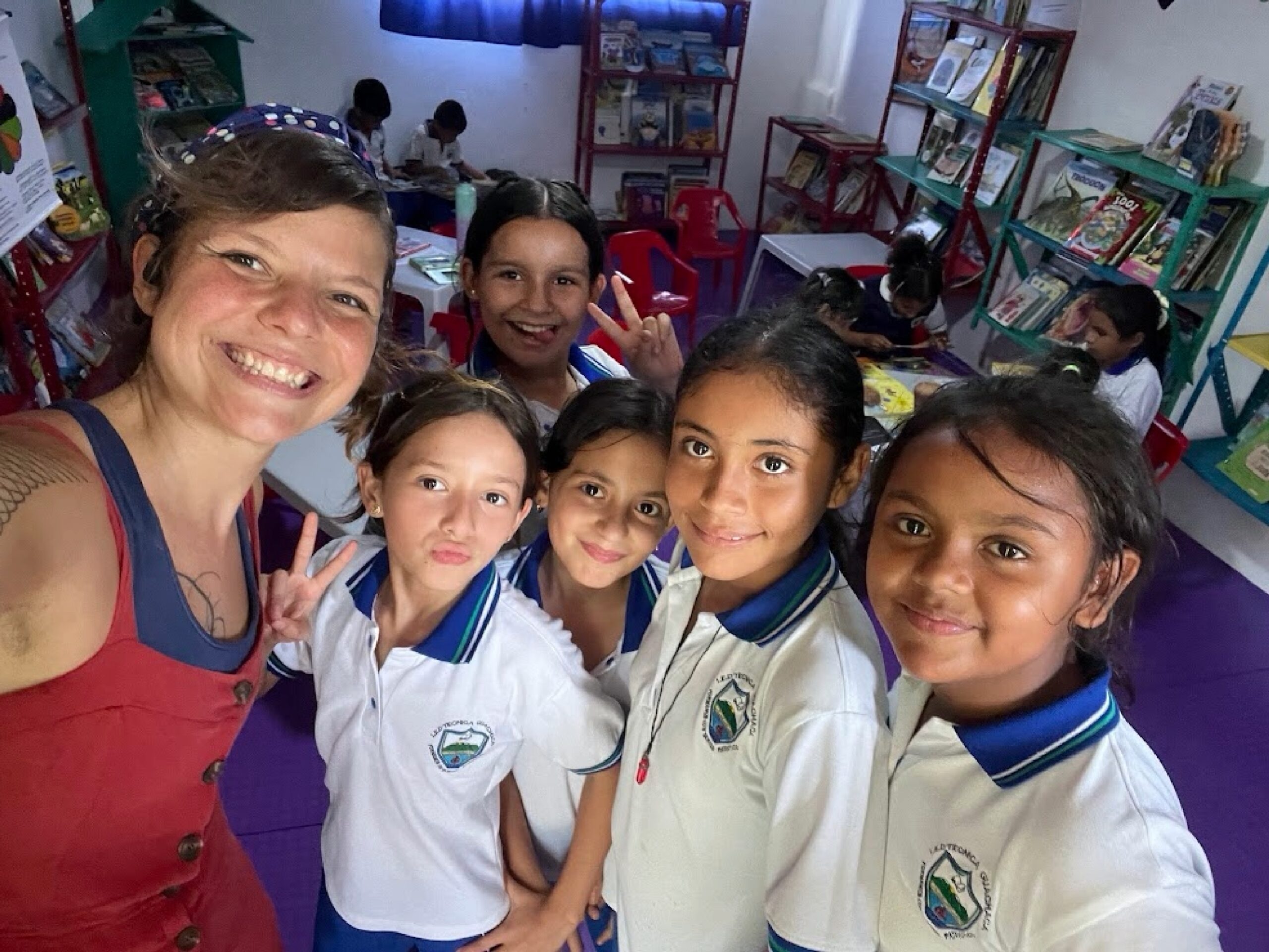 La colección cuenta con 750 libros, así como todos los elementos necesarios para ser un lugar agradable y una herramienta de lectura beneficiosa para la comunidad escolar. Para ello contamos con el apoyo de los estudiantes del Colegio Juan Ramón Jiménez de Bogotá. Trabajamos en colaboración con esta institución a lo largo del año 2025 y asesoramos a los estudiantes que organizaron una donación de libros en el mes de mayo dirigida a su comunidad de padres. Gran parte de los libros que constituyen el fondo de esta biblioteca provienen de esta donación. En Colombia, los estudiantes del último año de secundaria deben realizar un cierto número de horas de Trabajo Social para poder graduarse del Bachillerato. Fue en este marco que se realizó la donación.